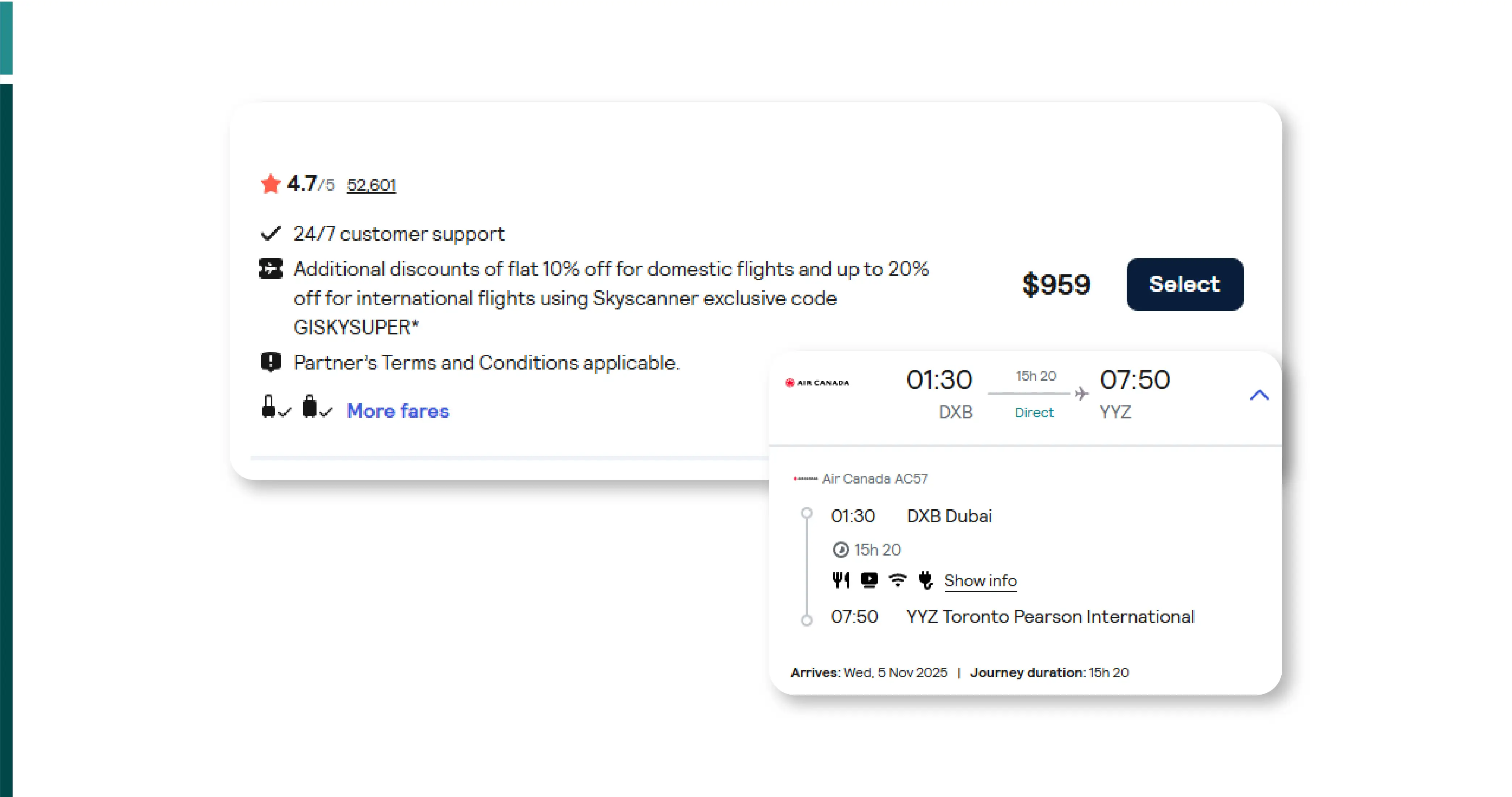 | Skyscanner | Flight | London | 520 | Available | None |